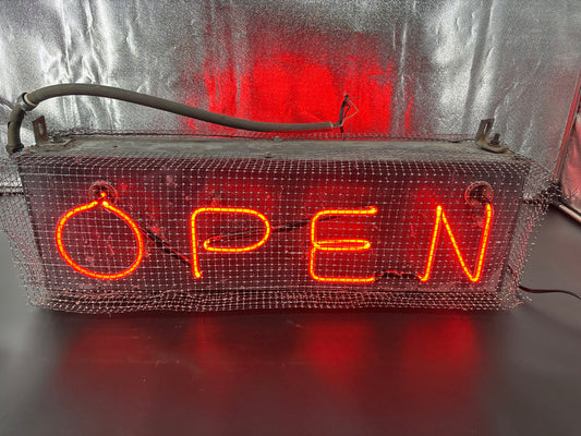 Vintage Double-Sided Open Sign with Cage