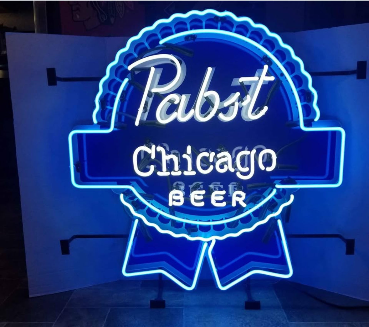 - White neon when lit