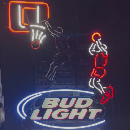 Bring the energy of the game to your space with this Bud Light Motion Basketball Player neon sign. Perfect for sports fans, bar owners, or collectors looking to add a dynamic centerpiece to their game room or man cave. A bold tribute to the thrill of live action and classic beer branding.