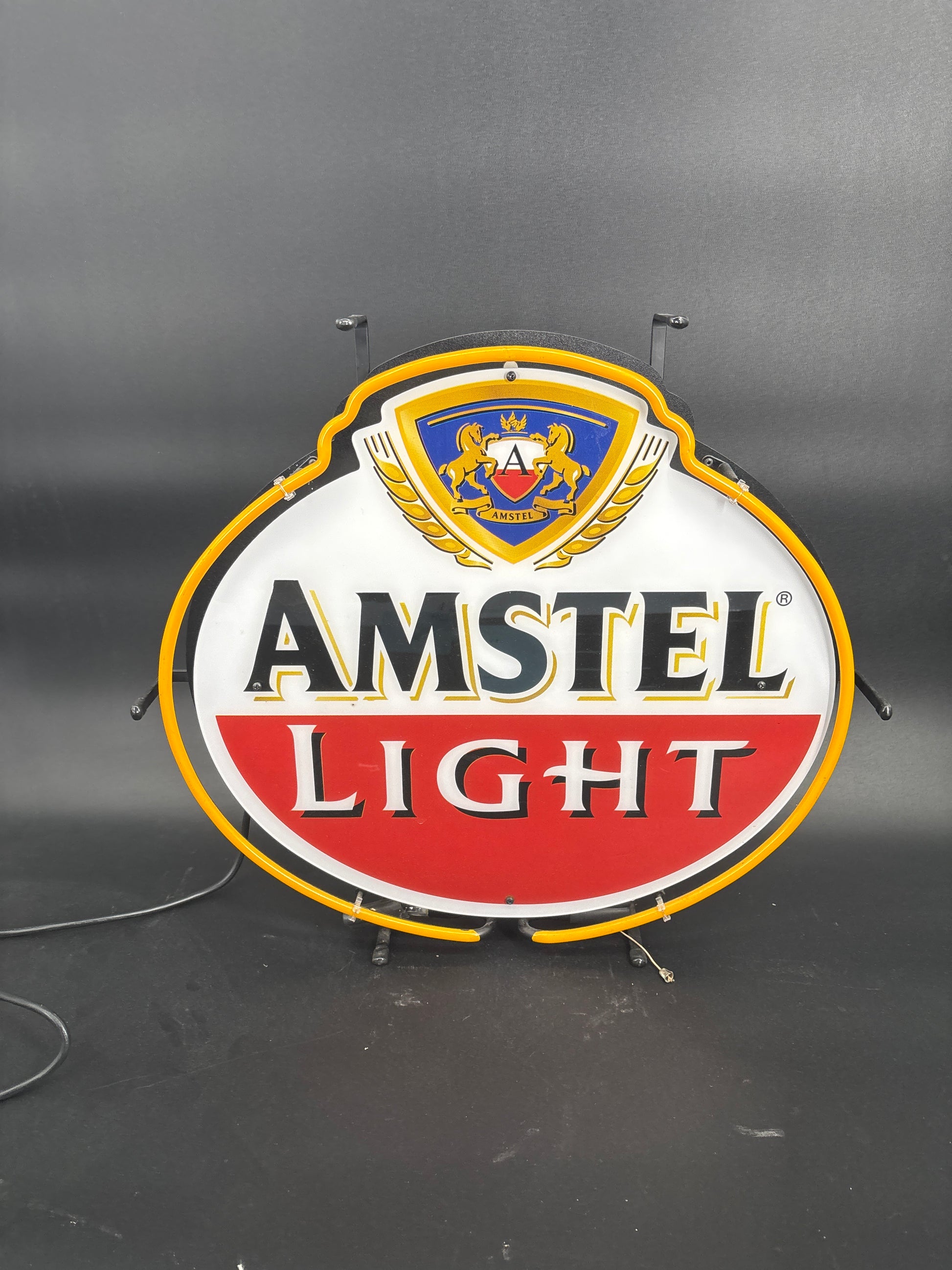 Illuminate your space with the classic elegance of this Amstel Light neon sign. Featuring the distinctive Amstel Light logo surrounded by a vibrant yellow neon border, this sign is perfect for adding a touch of sophistication and brightness to any setting.