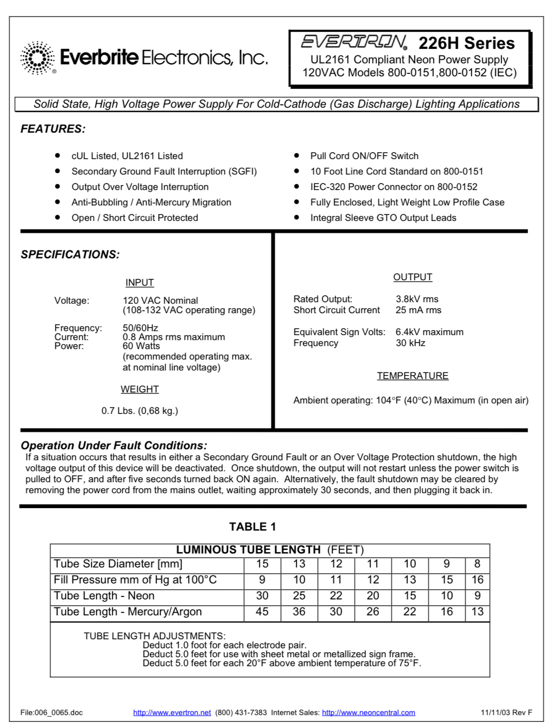 Evertron 226H Electronic Neon Sign Replacement Transformer – 3.8Kv